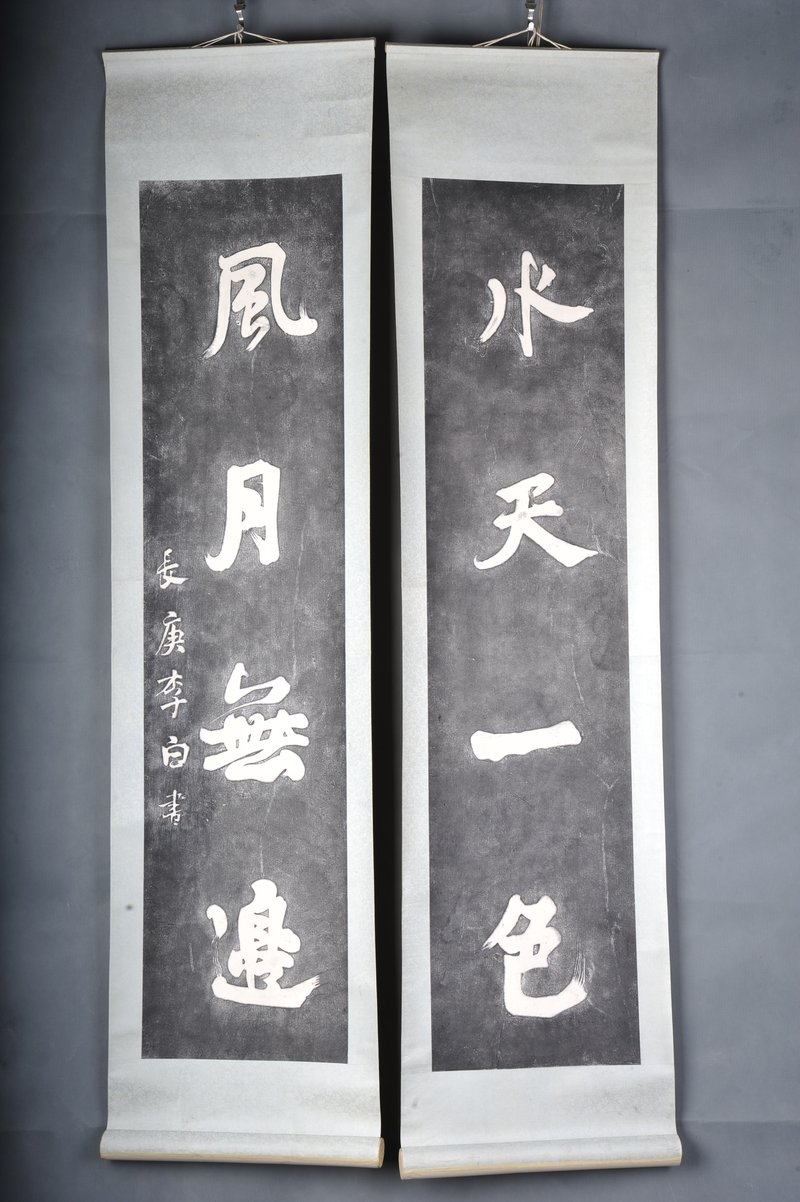 现代拓长庚李白书水天风月拓片对联