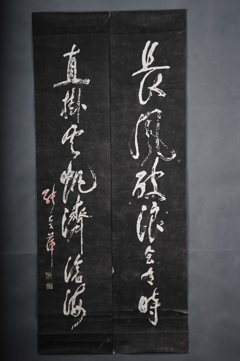 现代拓张爱萍书长风直挂拓片对联