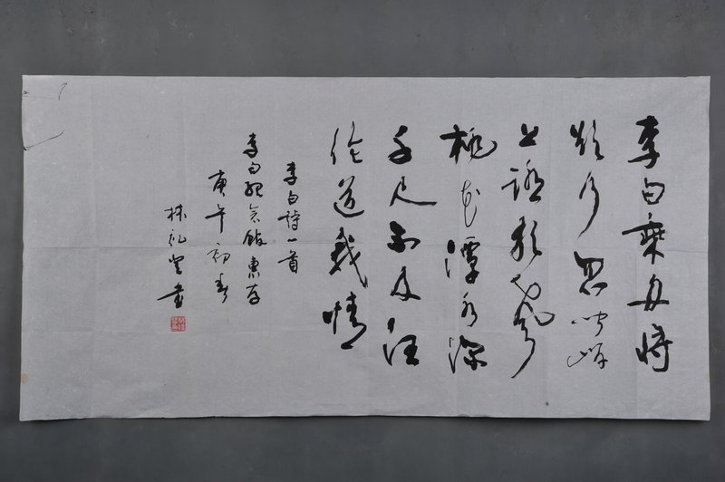 1990年林礼登行书李白诗《赠汪伦》横幅