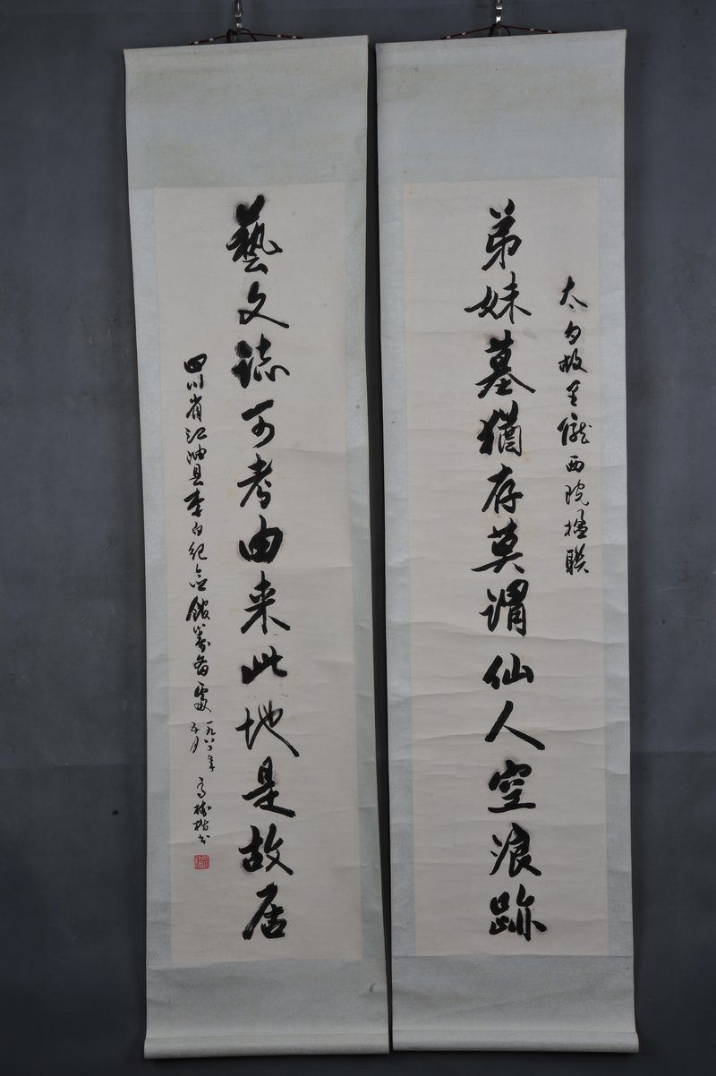 1984年高树楷行书“弟妹·艺文”对联