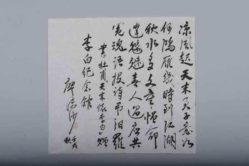 1982年廖沫沙行书杜甫诗《天末怀李白》斗方