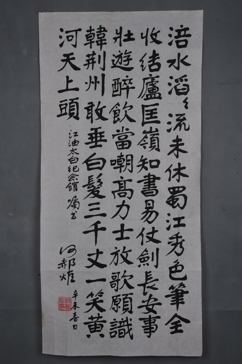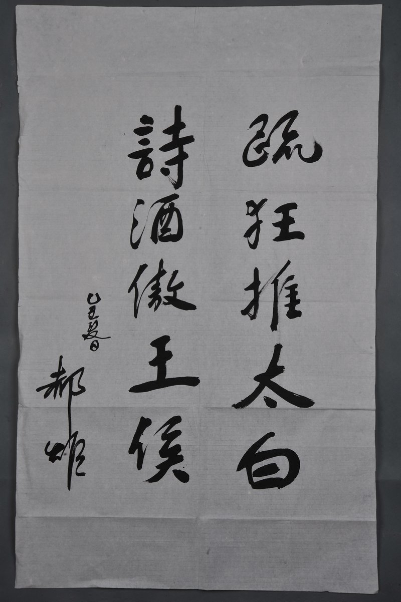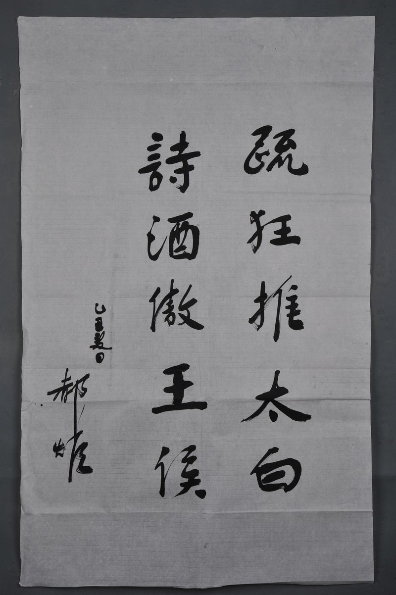 1985年何郝炬行书《疏狂推太白》条幅