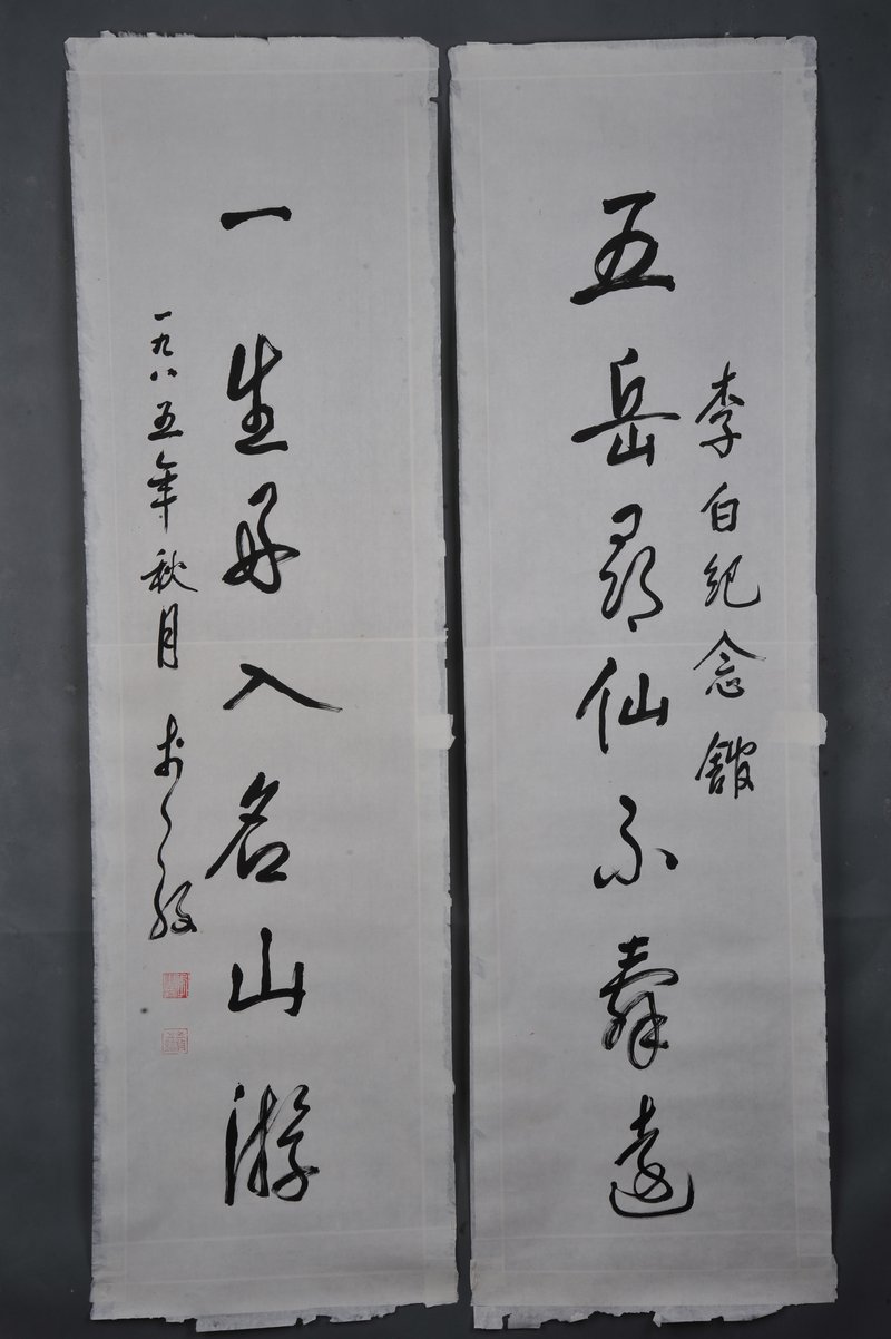 1985年李放行书“五岳·一生”对联