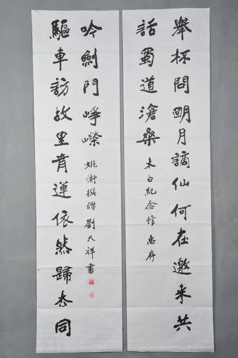 1987年刘天祥行书“举杯·驱车”对联