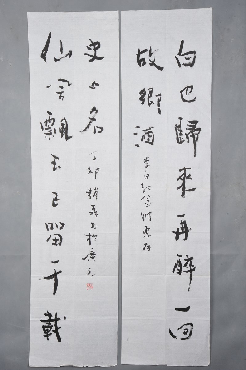 1987年赵森行书“白也·仙风”对联