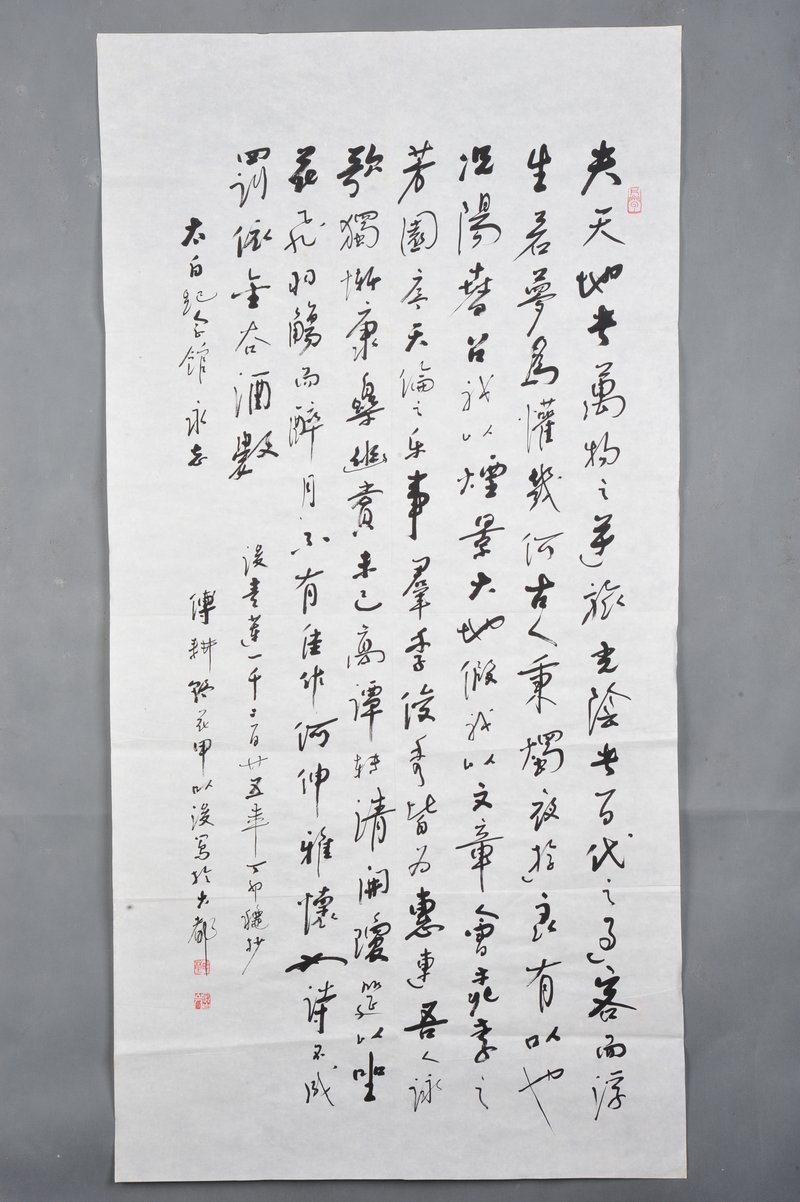 1987年傅耕琛行书李白诗《春夜宴桃李园序》条幅