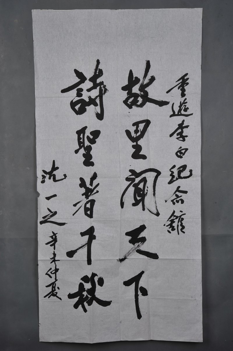 1991年沈一之行书“故里闻天下”条幅