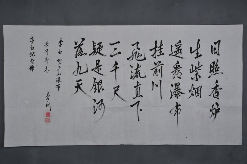 2002年李刚行书李白诗《望庐山瀑布》横幅