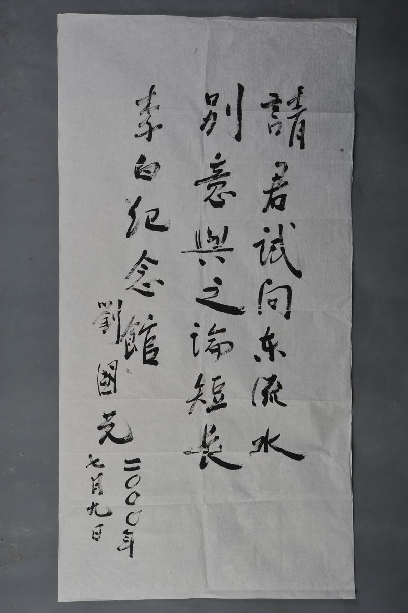 2000年刘国光行书“请君试问东流水”条幅