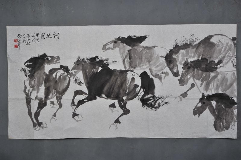1994年邓文华群马清风图横幅