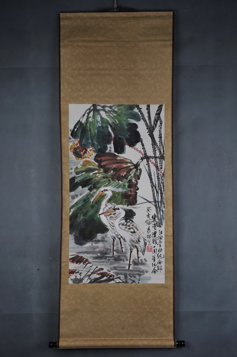 1993年车述祖白鹭图卷轴