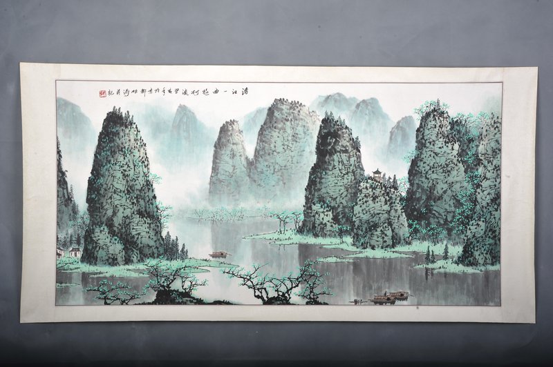 1983年赵松涛杜甫诗意《画江村》镜片