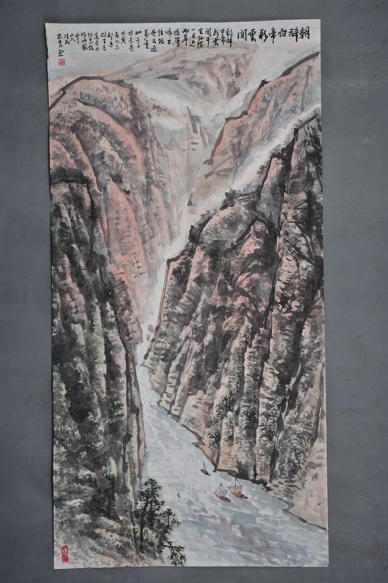 1998年胡忠良李白诗意《早辞白帝彩云间》条幅