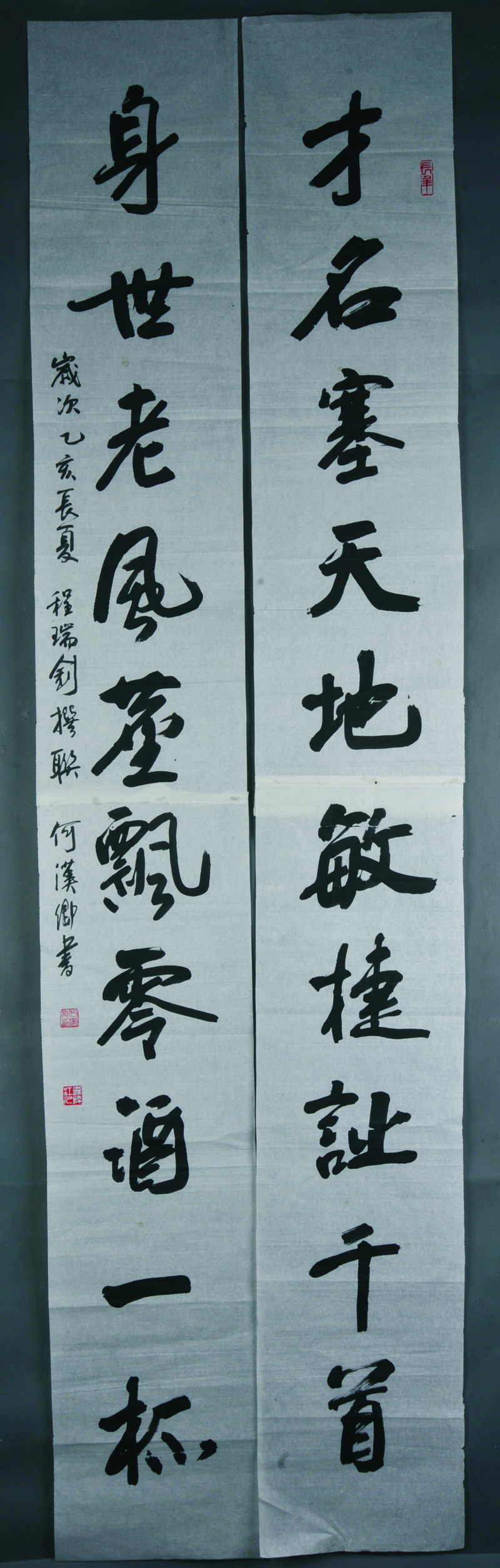 1995年何汉卿行书“才名·身世”对联