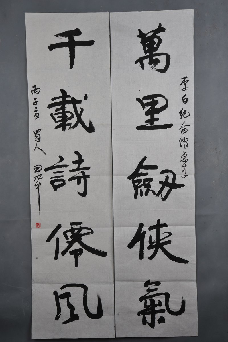 1997年田旭中草书“万里·千载”对联