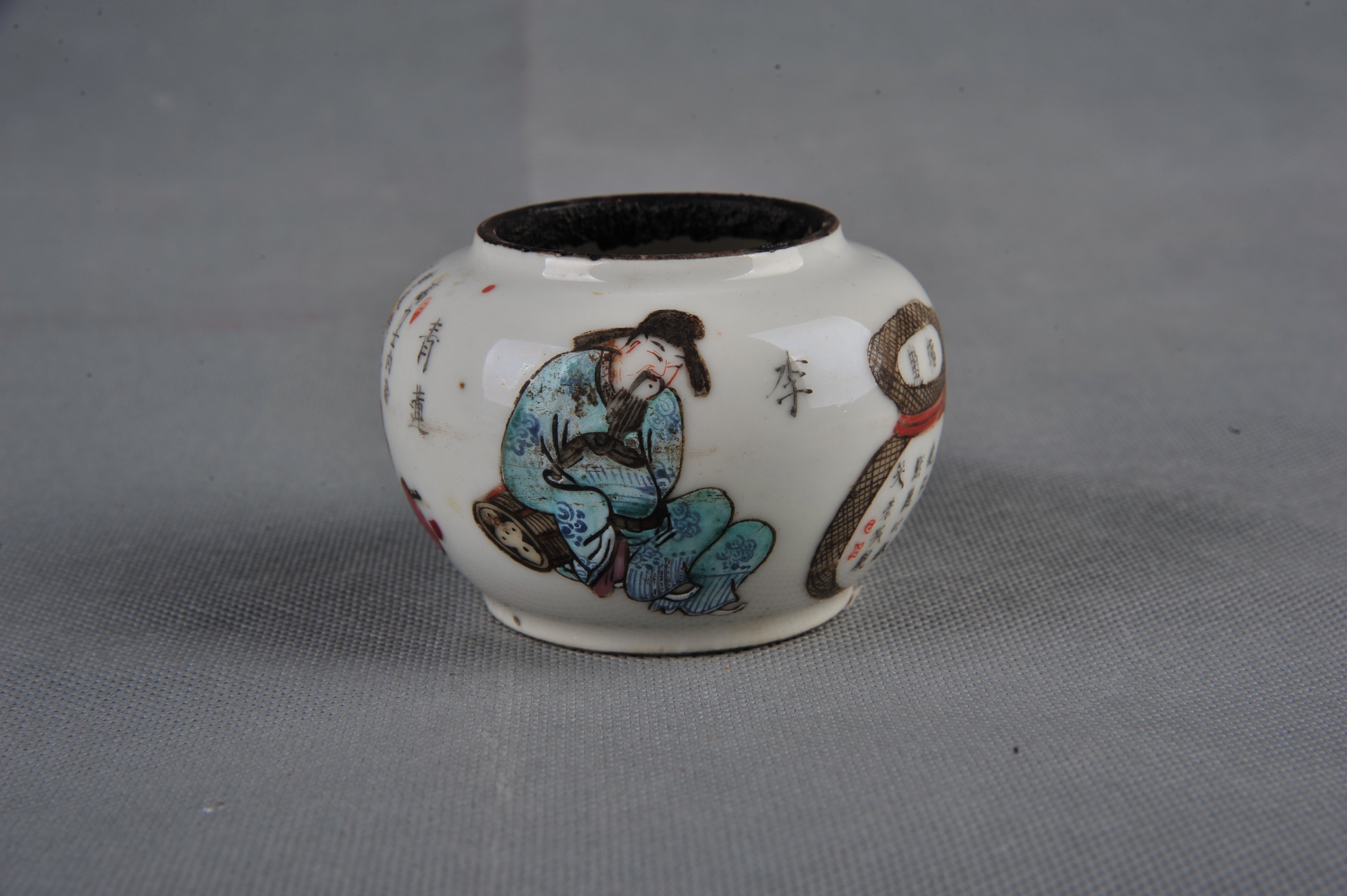 粉彩人物瓷笔洗