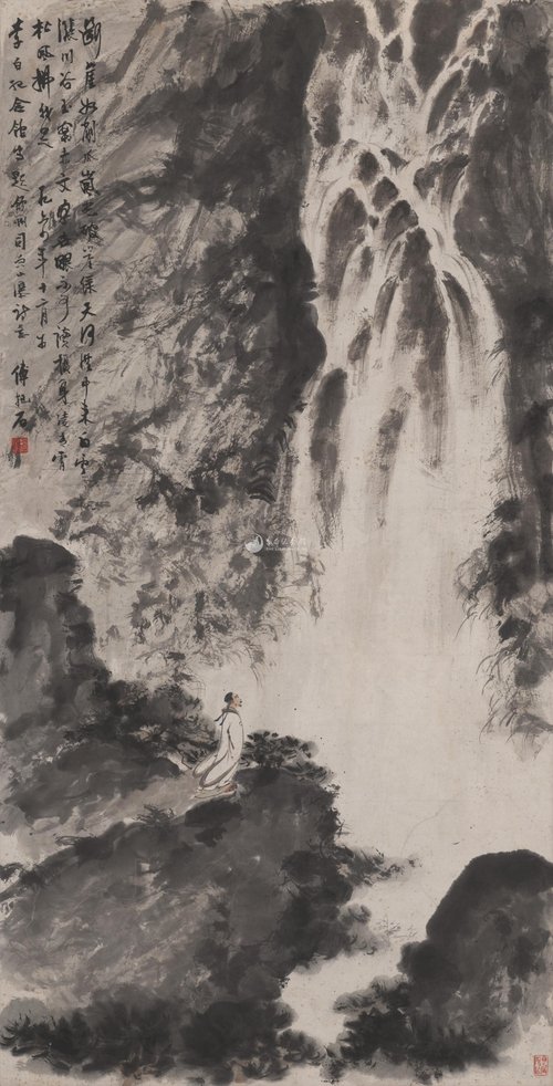 现代 傅抱石 司空山瀑布诗意