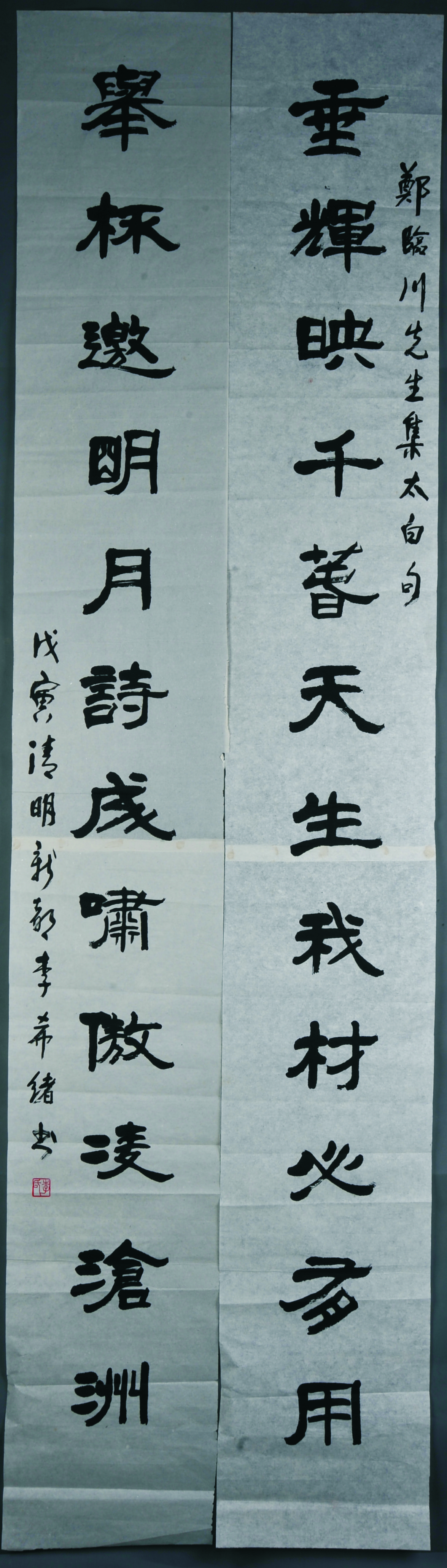 1998年李希绪隶书“垂辉·举杯”对联