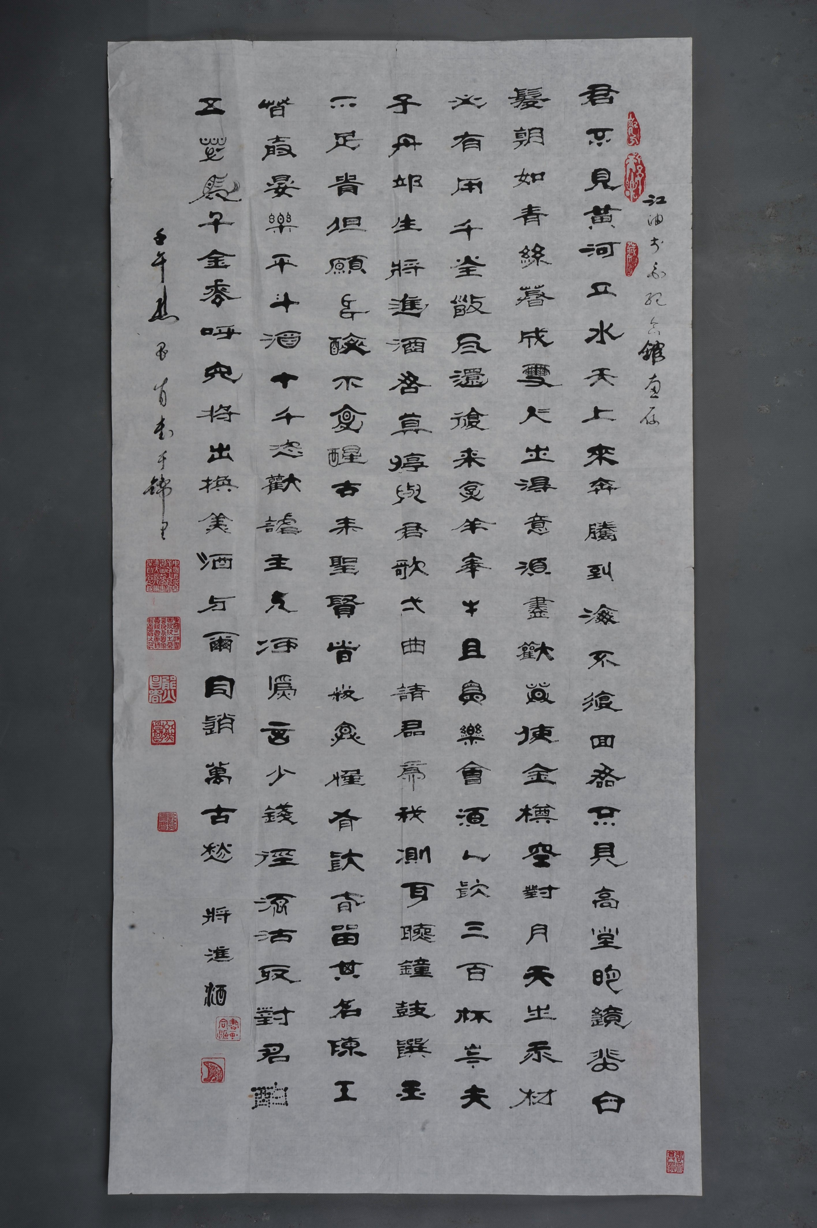 2002年熊昌志篆书李白诗《将进酒》条幅