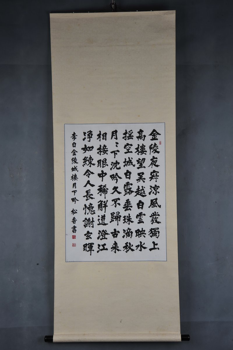 2001年阿部松香行书李白诗《金陵城楼月下吟》卷轴