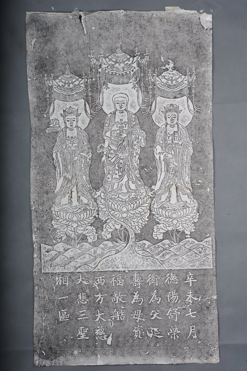 现代拓西方大慈大悲三圣像拓片