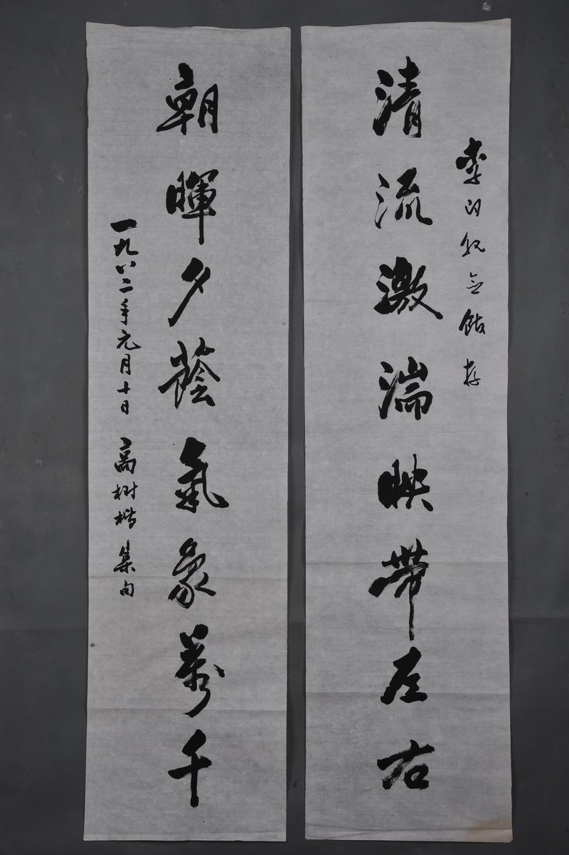 1982年高树楷行书“清流·朝晖”对联
