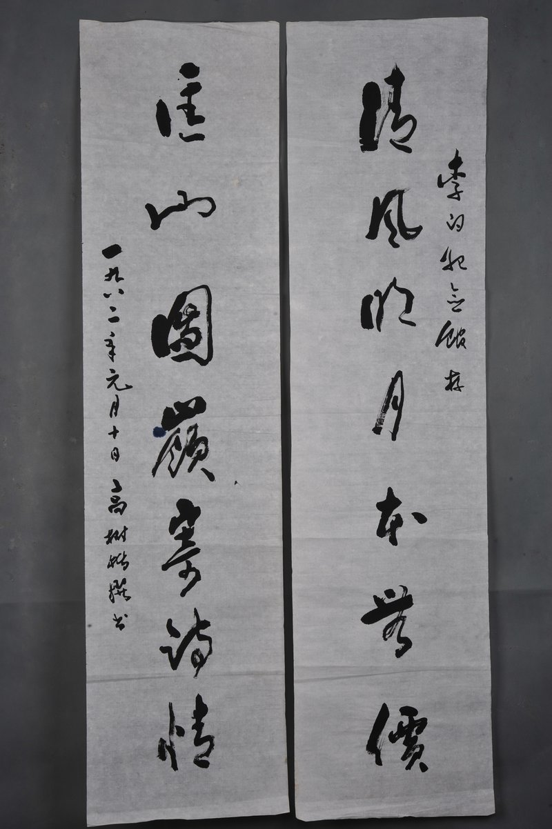 1982年高树楷行书“清风·匡山”对联