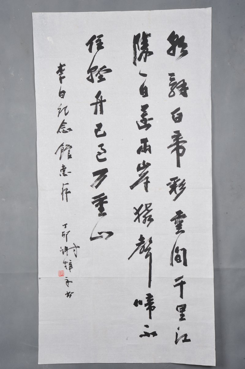 1987年谢梓文行书李白诗《早发白帝城》条幅