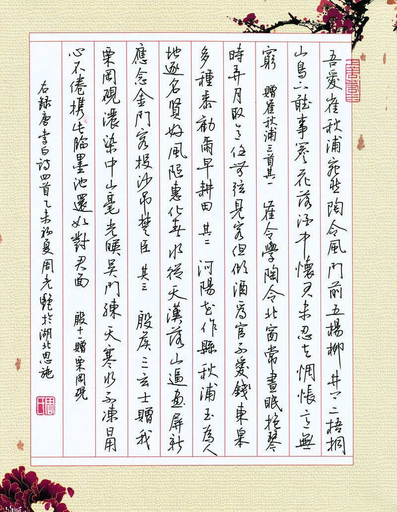 2015年周光艳硬笔书李白诗