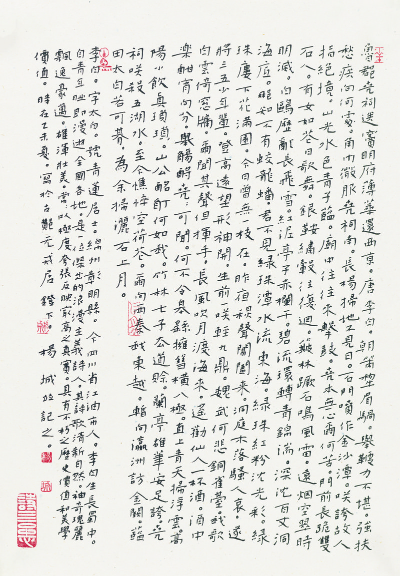 2015年杨城硬笔书李白诗