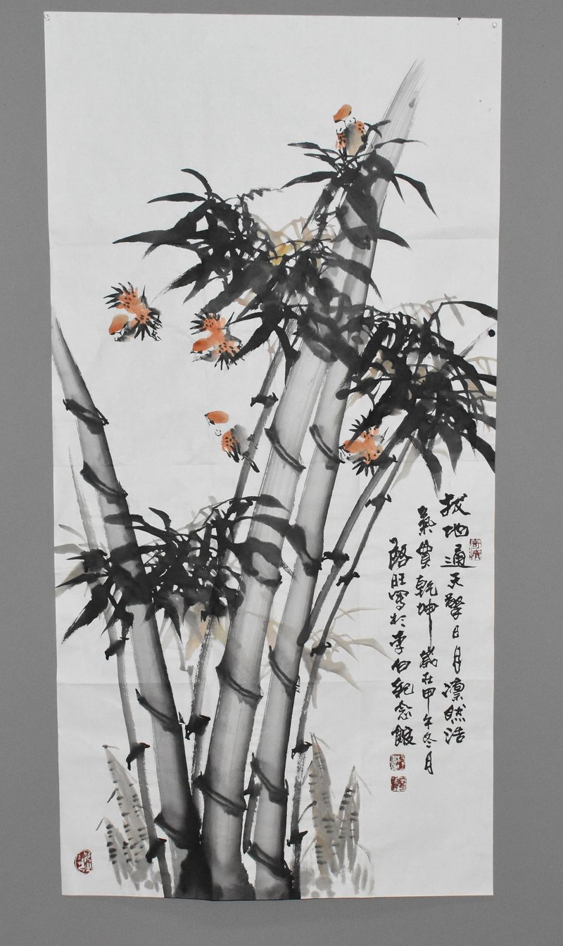 2014年李啟明竹雀图条幅