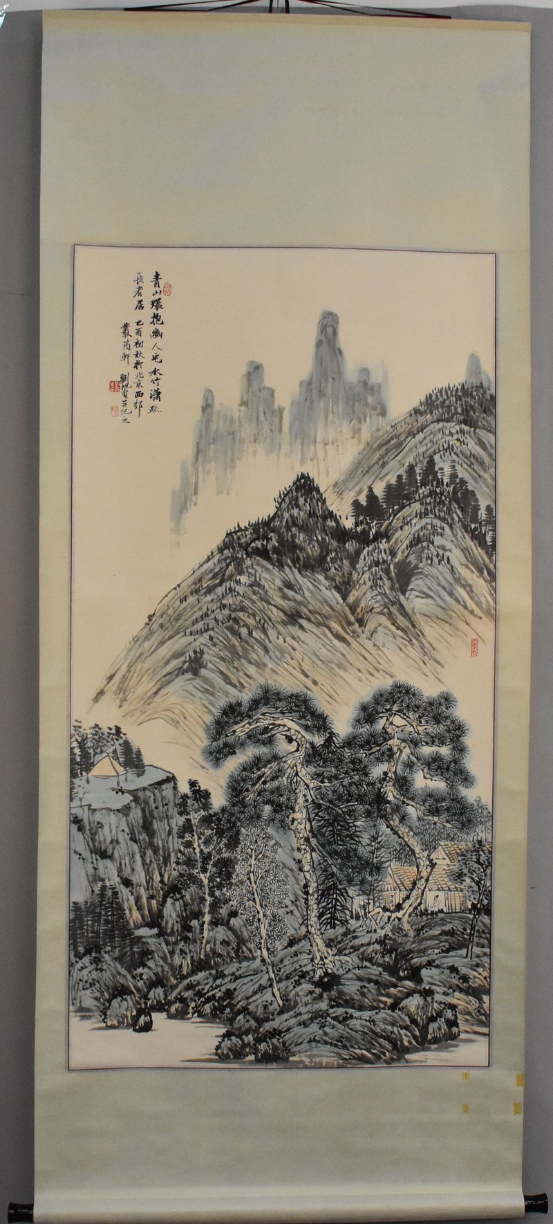 2005年刘旭“青山环抱幽人宅、水竹潇疏长者居”画卷轴