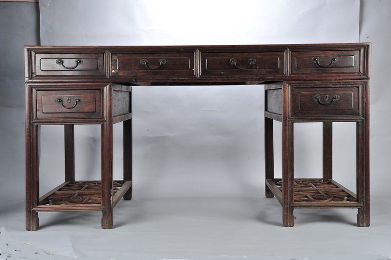 清大理石嵌面紫檀写字方桌