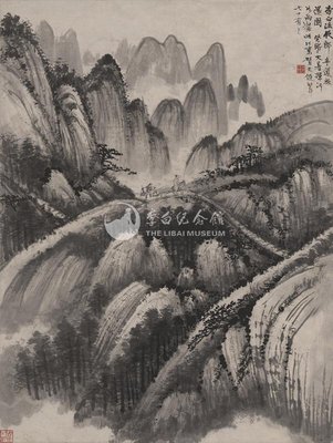 1963年贺天健李白诗意画《流放夜郎半道放还》条幅