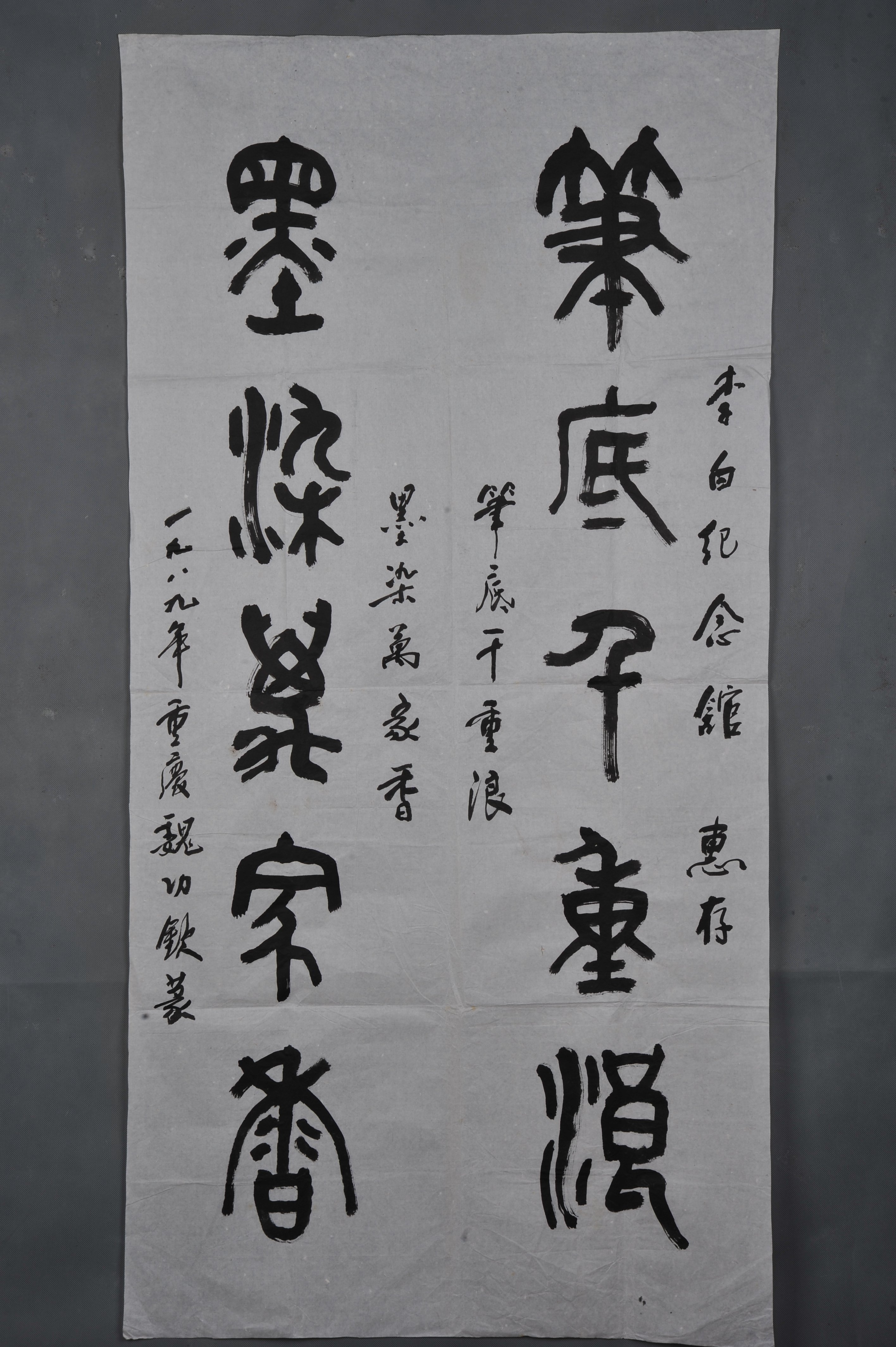 1989年魏功钦篆书“笔底千重浪”条幅
