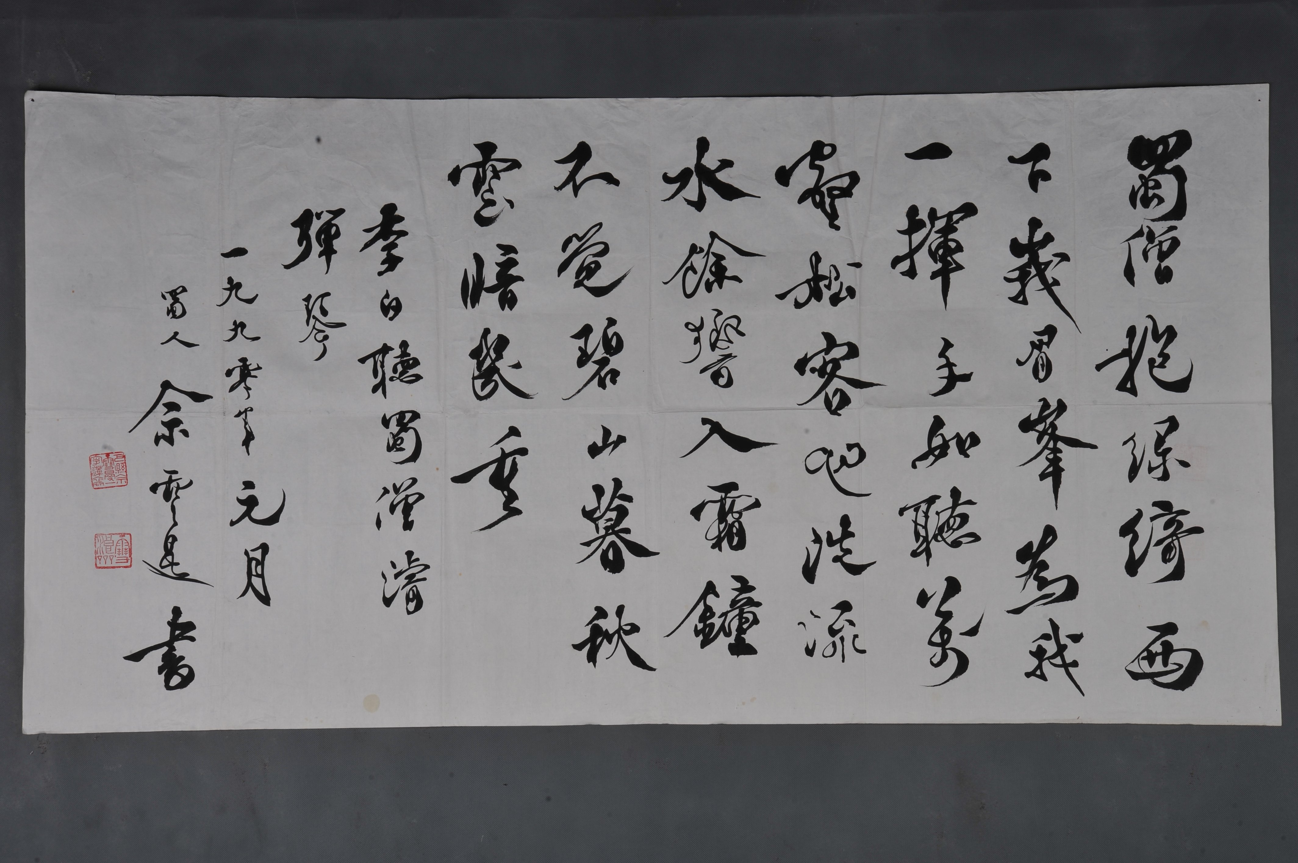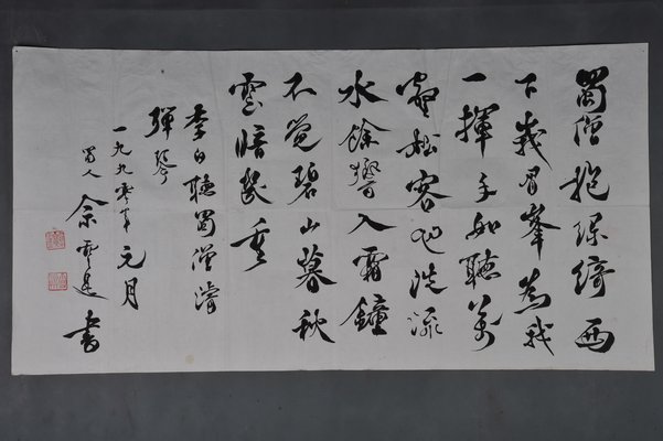 1990年佘雪曼行书李白诗《听蜀僧睿弹琴》横幅