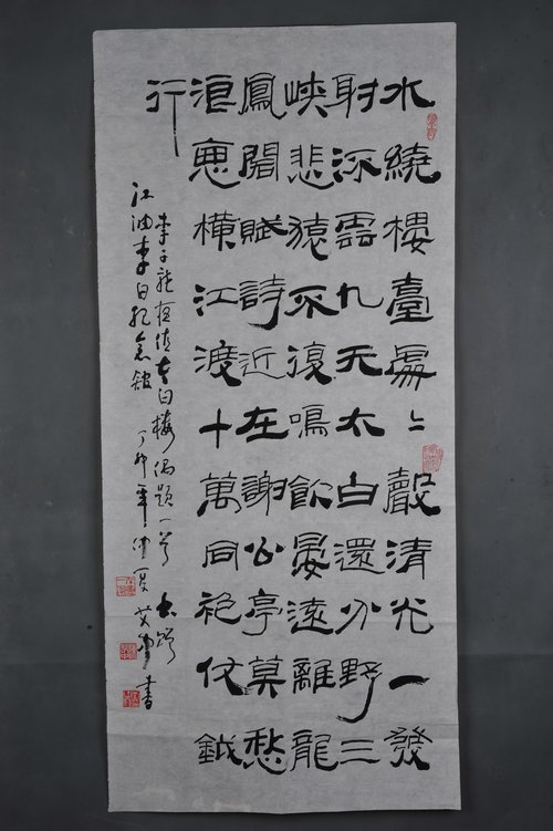 1987年陈艾中隶书“李子龙诗”条幅