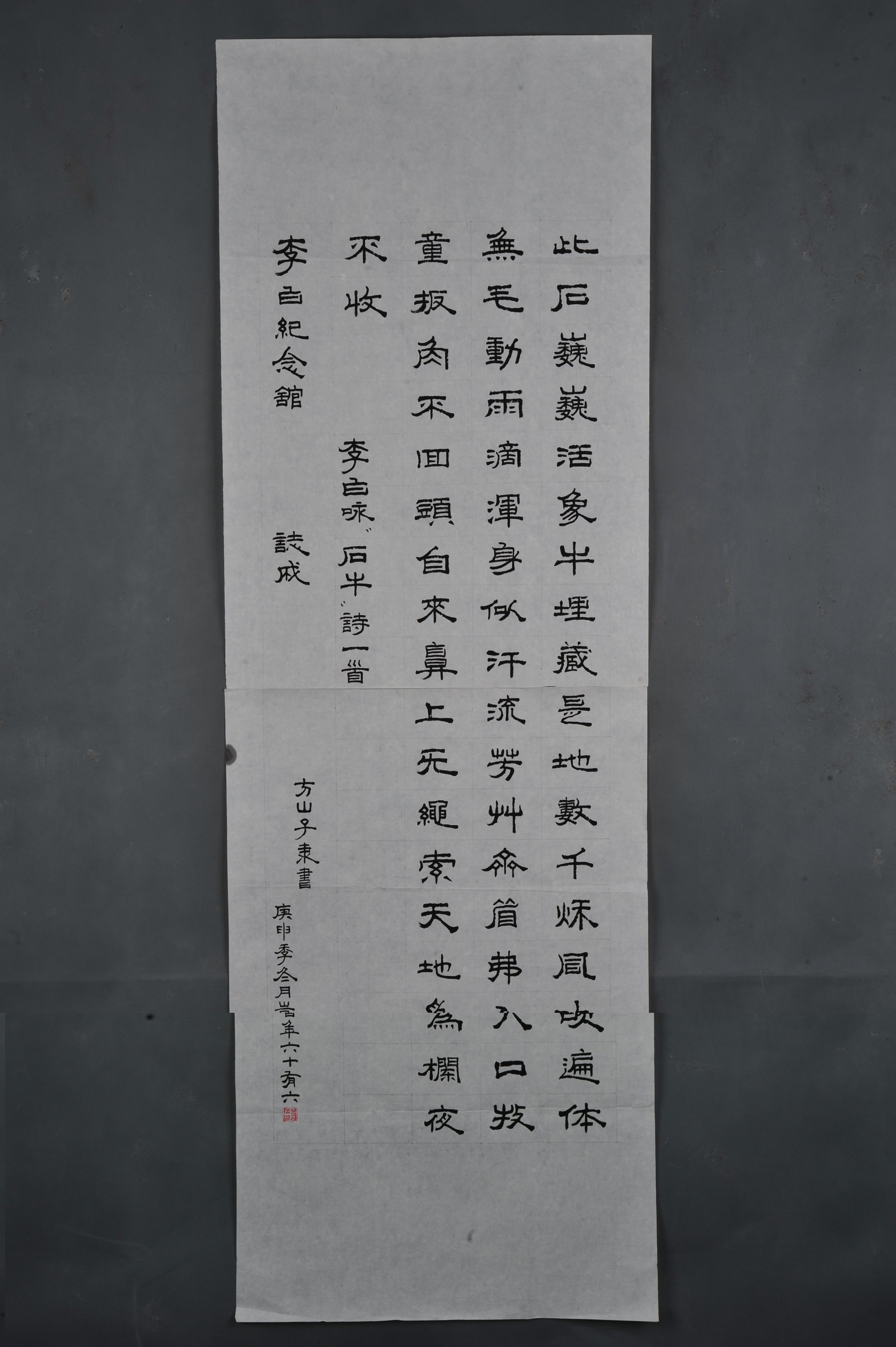 1980年方山子隶书李白诗《咏石牛》条幅