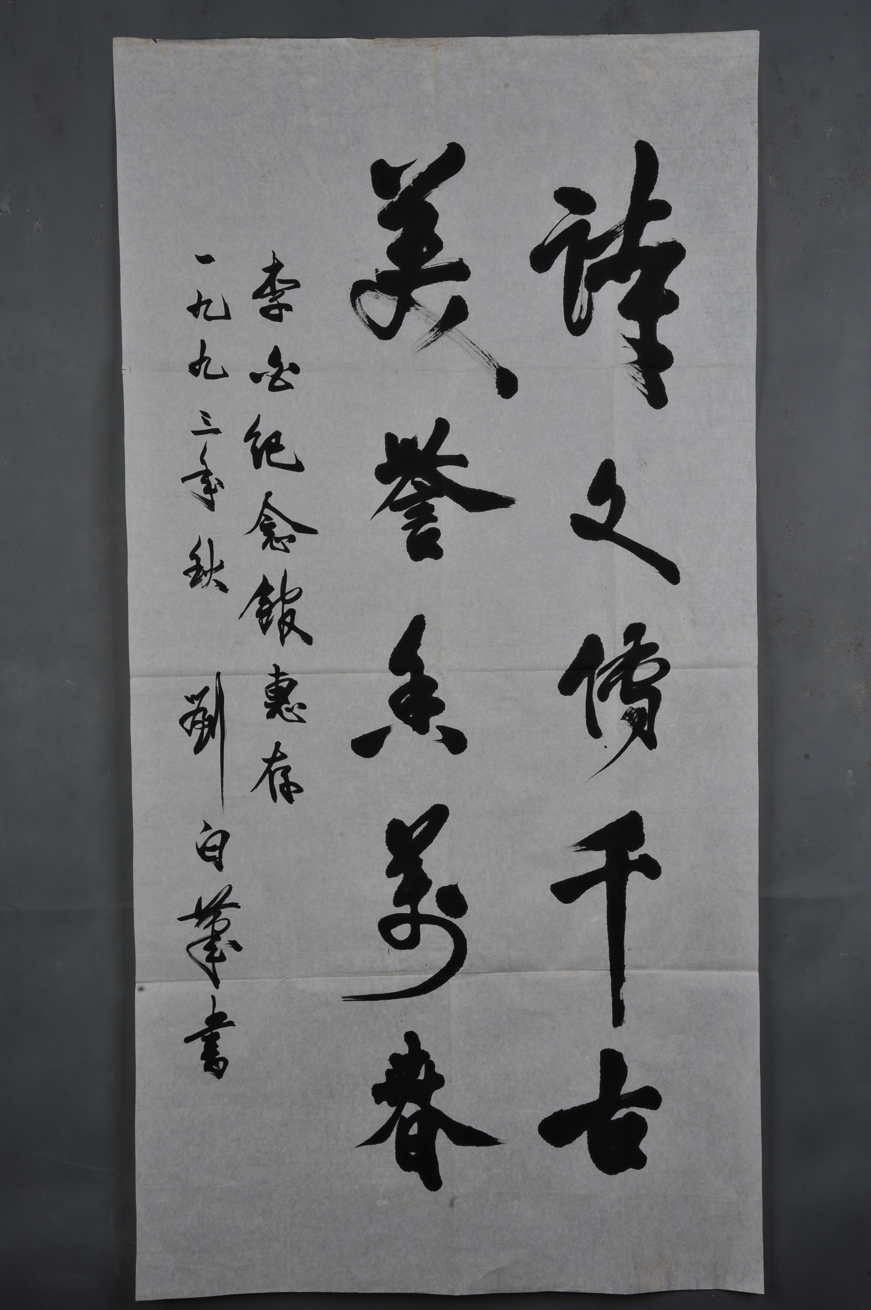 1993年刘白笔行书“诗文传千古”条幅