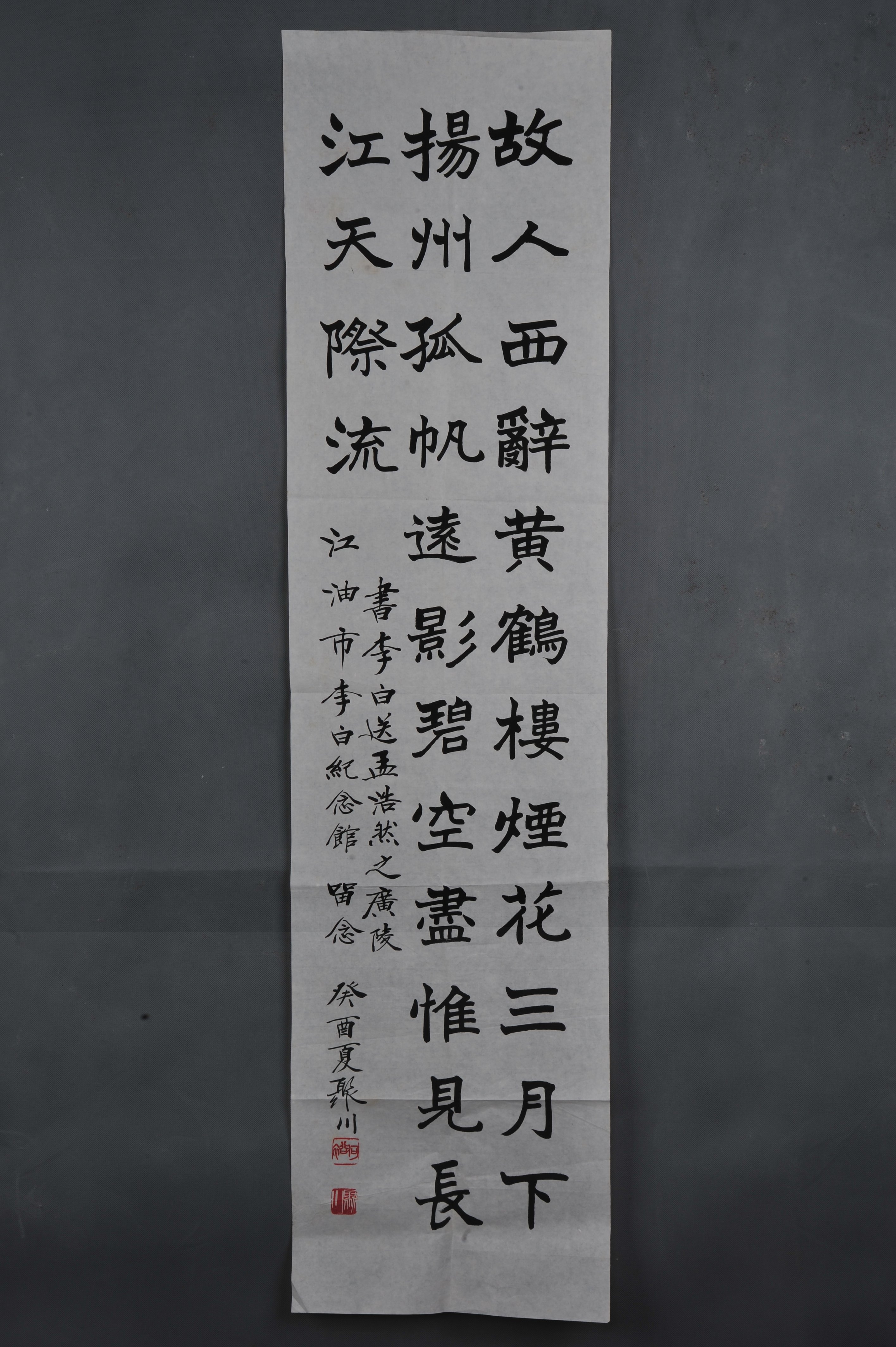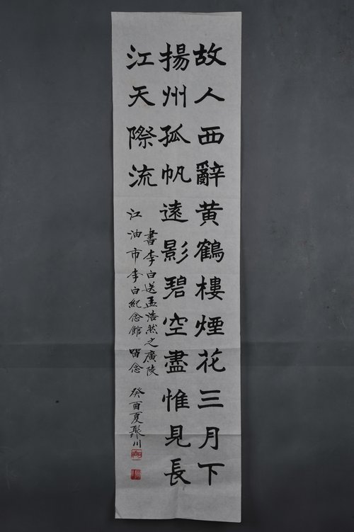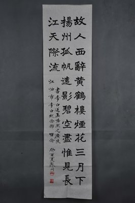 1993年何聚川楷书李白诗《送孟浩然之广陵》横幅