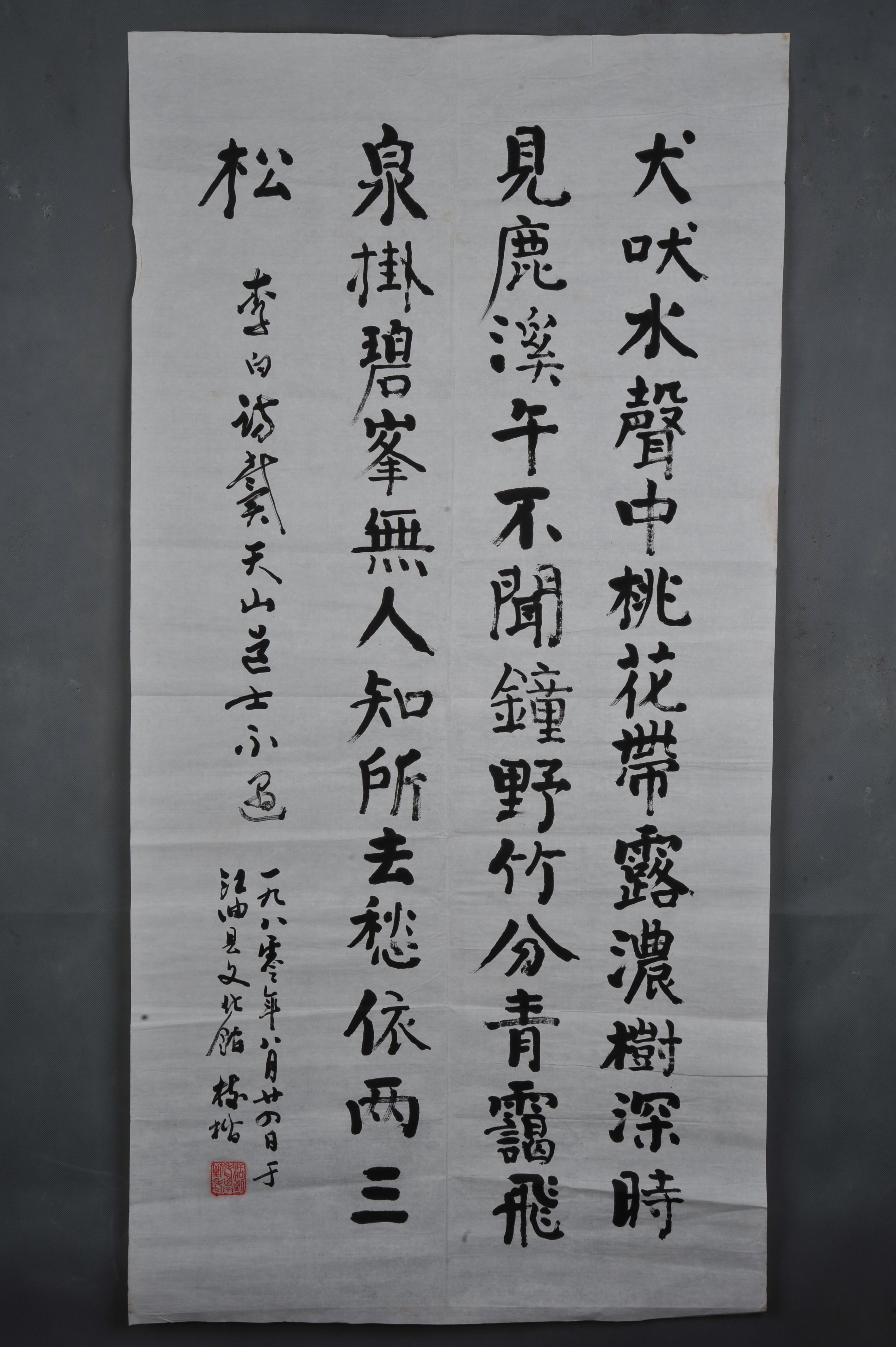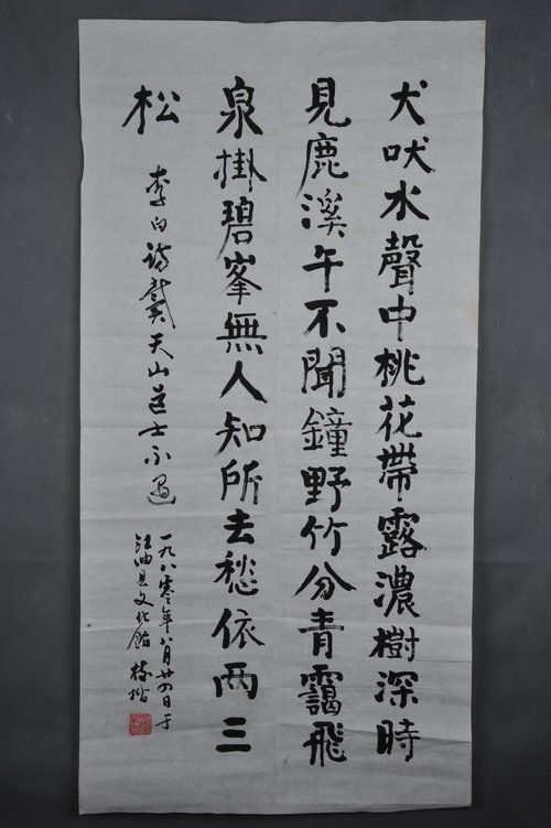 1980年高树楷楷书李白诗《访戴天山道士不遇》条幅