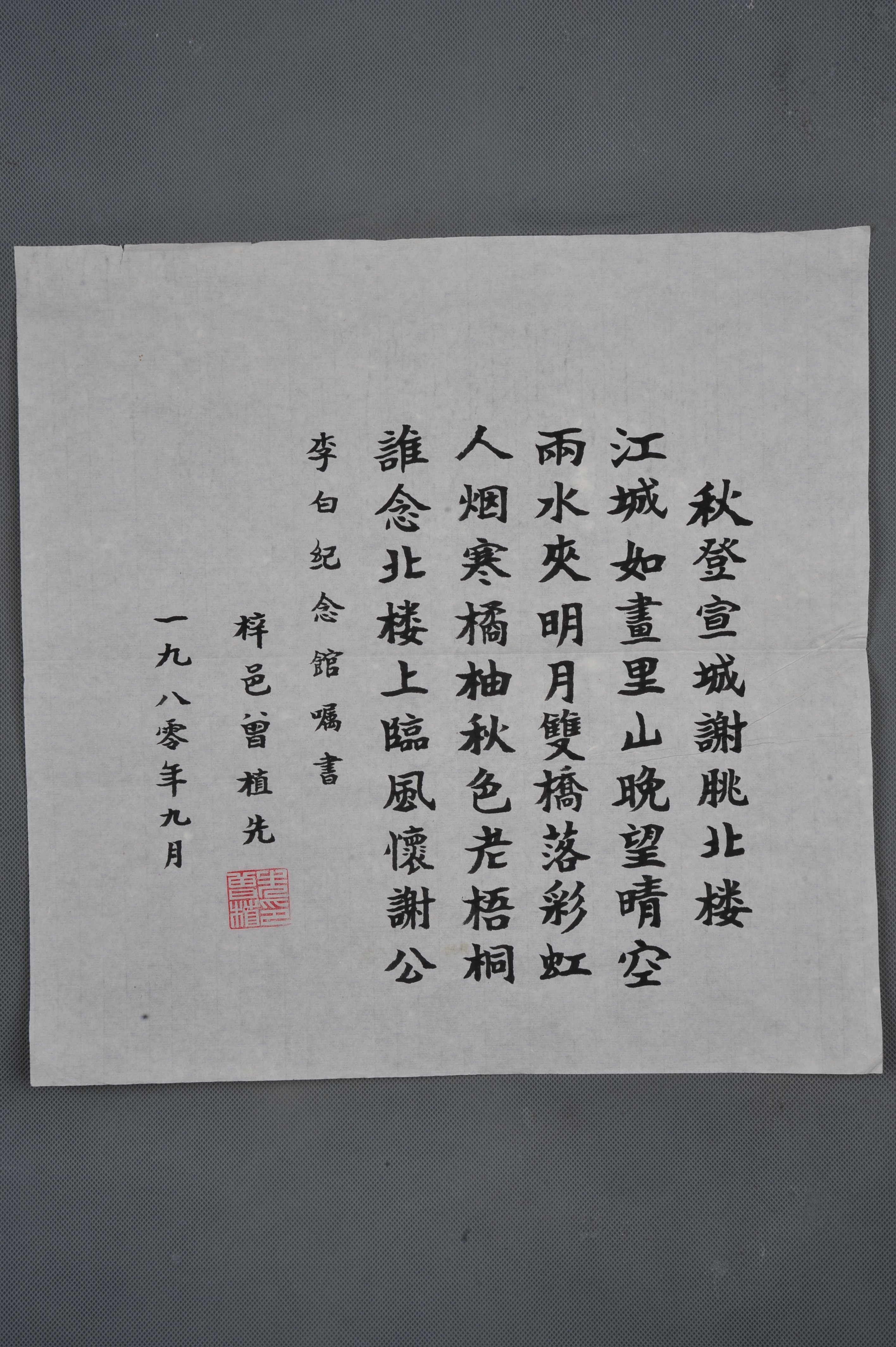 1980年曾植先楷书李白诗《秋登宣城谢脁北楼》斗方