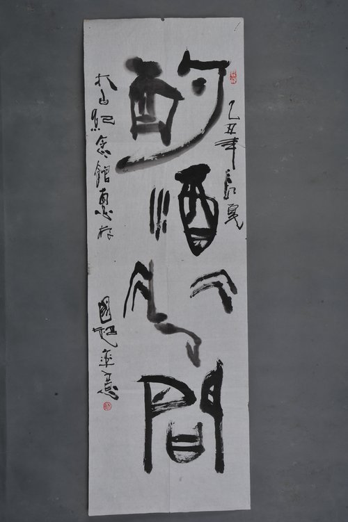 1985年国超篆隶书“酌酒花间”条幅