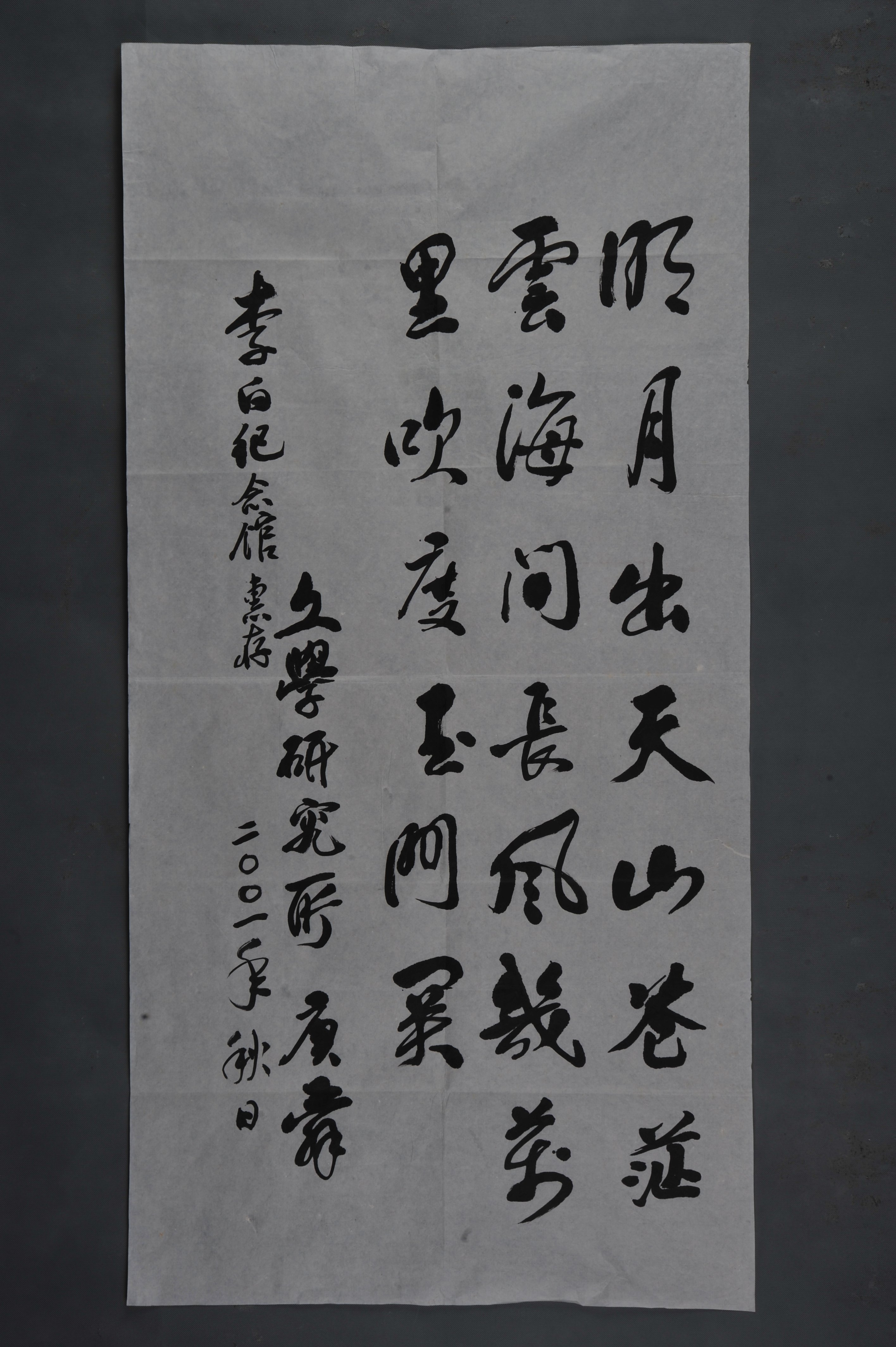 2001年吴庚舜行书李白诗《关山月》条幅