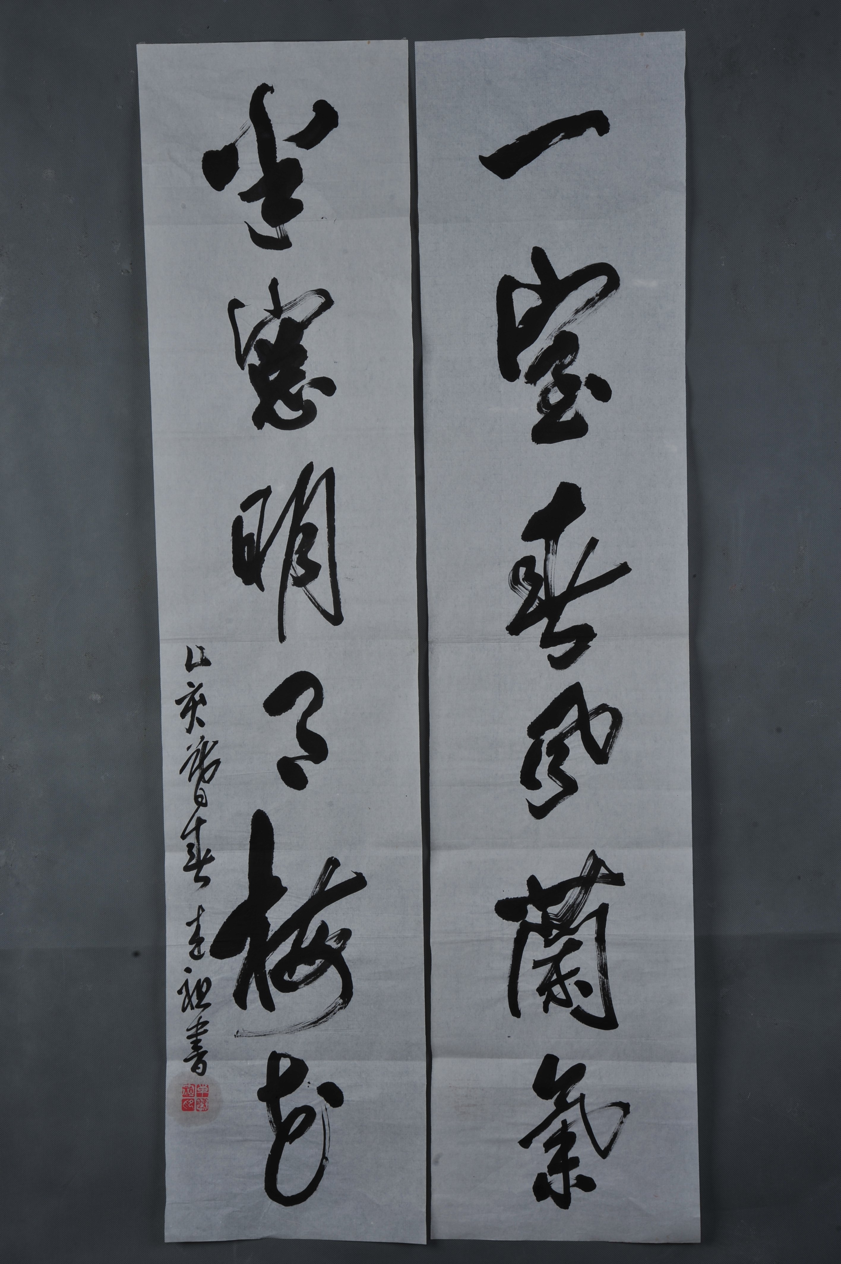 1995年车述祖行书“一室·半窗”对联