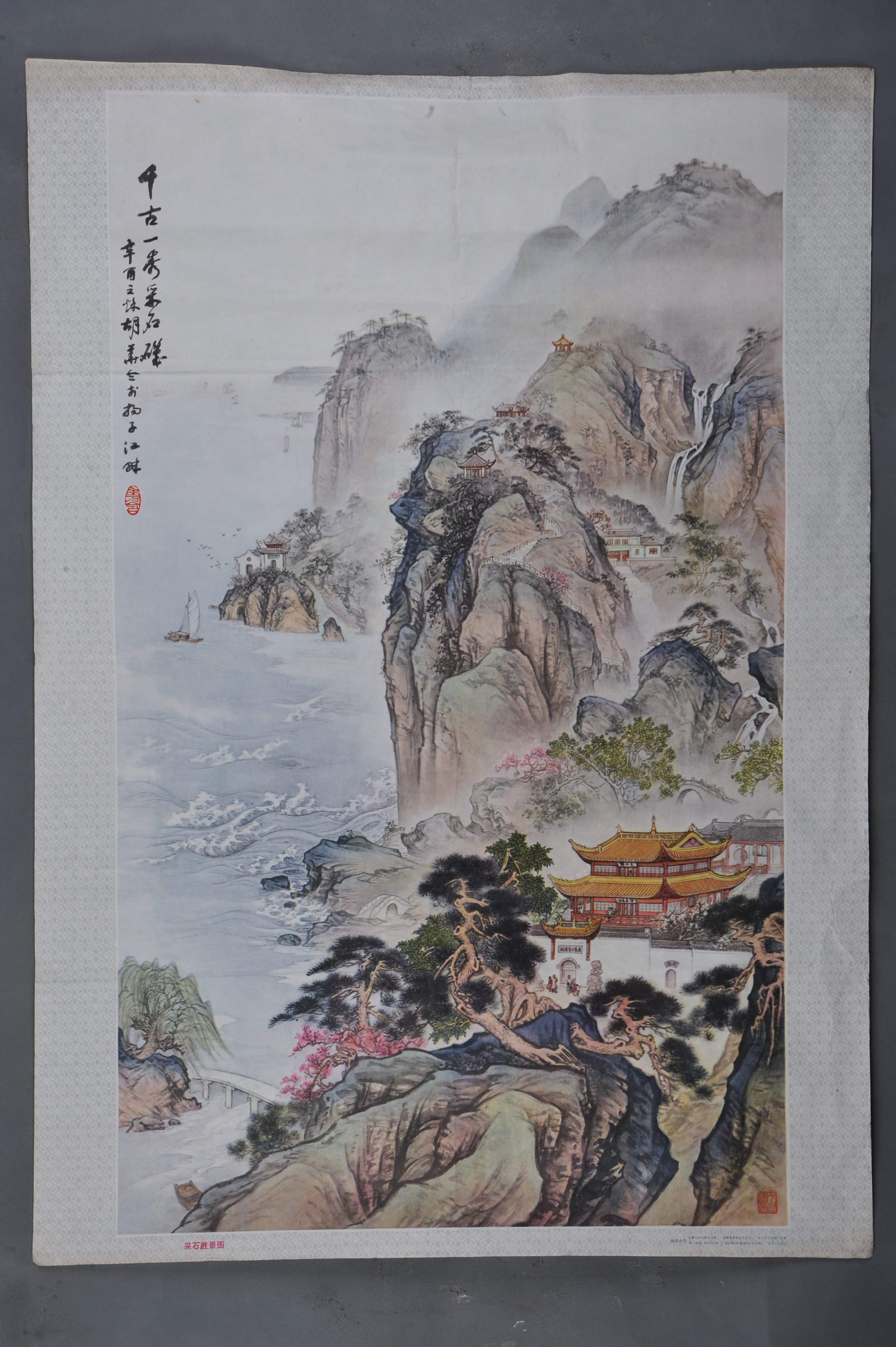 现代印刷品采石矶胜景图镜片