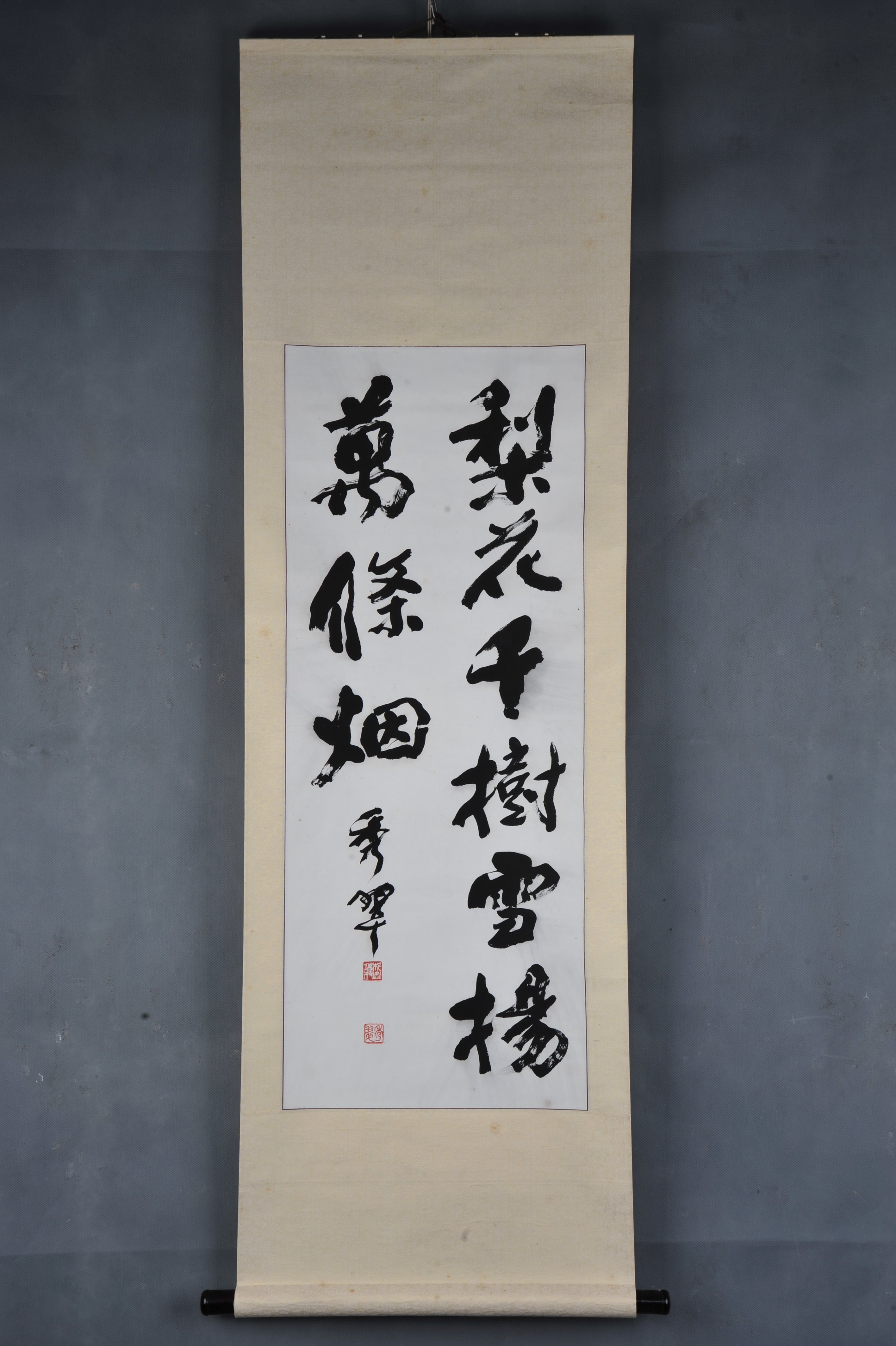 2001年杉山秀翠行书梨花千树雪卷轴