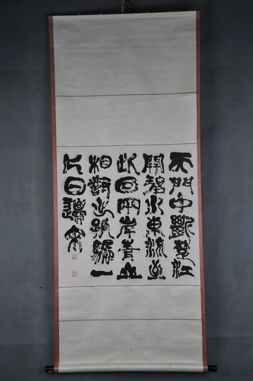 2001年酒井玉婷隶书李白诗《望天门山》卷轴