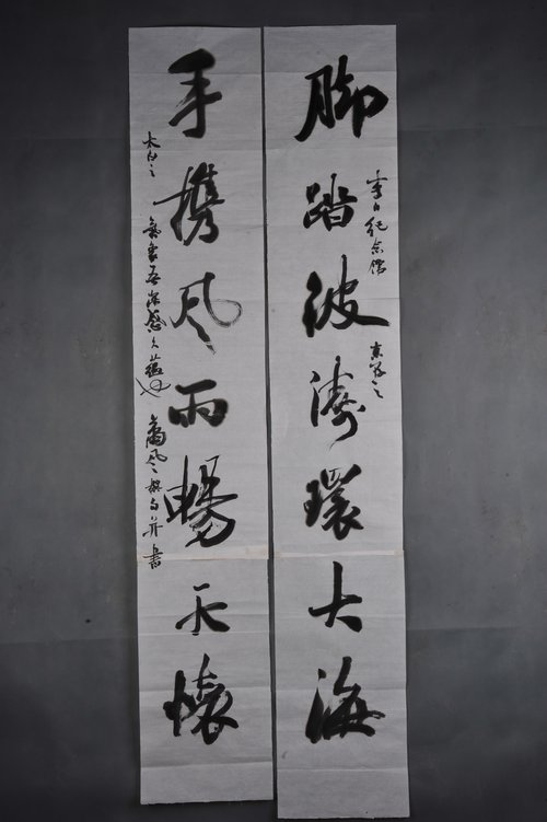 现代萧军行书脚踏手携对联