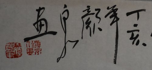 2007年颜泉“红于二月花”斗方